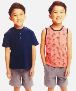 - L’ensemble comprend : 2 chandails à manches courtes et 1 pantalon court