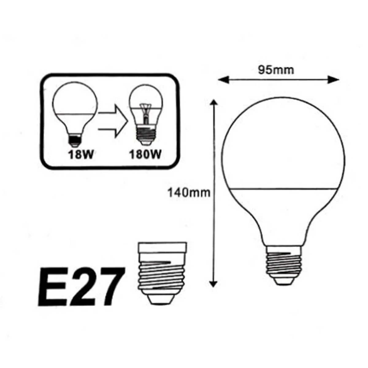 Détails techniques du lot de 10 ampoules LED G95 18W