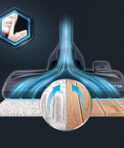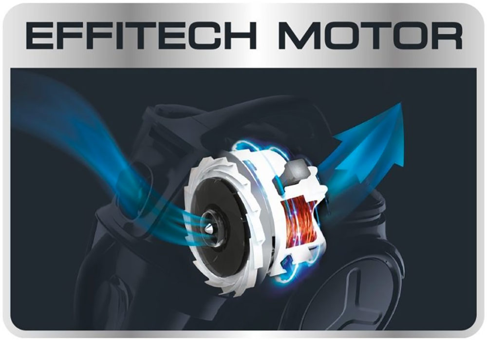 Assurant une meilleure autonomie, son bac à poussière est également facile à vider sans effort. Avec un moteur EffiTech assurant un nettoyage en profondeur et la technologie cyclonique avancée pour des performances durables jour après jour.