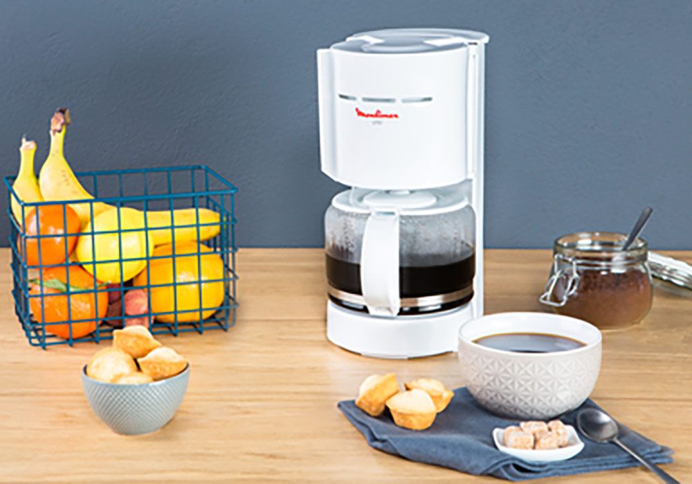 La cafetière FG121110 de Moulinex d’une puissance de 800Watts vous permet de réaliser jusqu’à 12 tasses de café en toute simplicité. Le tout dans un design moderne et élégant blanc et gris !