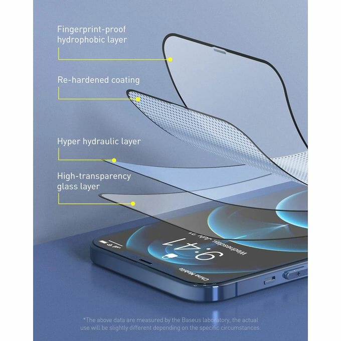 - De plus, le verre Baseus n’assure aucun effet arc-en-ciel sur l’écran et empêche les bavures et les taches grasses lorsqu’il est pressé. Verre ultra fin, sa transparence cristalline assure une sensibilité maximale du capteur et la transmission de toutes les couleurs sans dénaturer leur luminosité et leurs nuances.