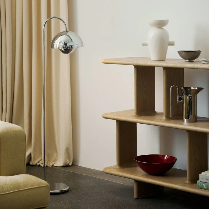 Créée par Verner Panton en 1968, la collection Flowerpot est une icône du design danois, incarnant le style du célèbre designer. Editée par And Tradition, cette série incontournable continue de s’enrichir avec l’arrivée d’un modèle de lampadaire. À une hauteur optimale pour les fauteuils, les canapés et les tables, le lampadaire Flowerpot VP12 offre un éclairage de qualité. Avec son double abat-jour emblématique, le lampadaire Flowerpot diffuse une lumière douce et accueillante, idéale pour créer une ambiance chaleureuse.