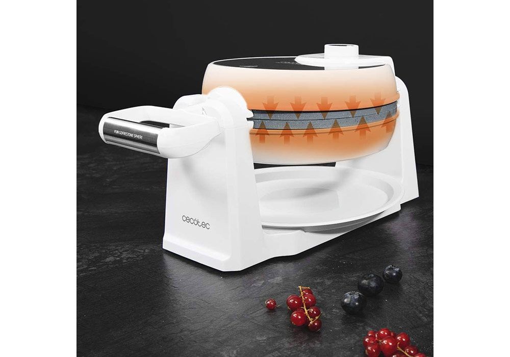 Il possède le système rotatif Sphere, un mécanisme qui permet de faire tourner le gaufrier à 180 º pour répartir uniformément la pâte et obtenir des gaufres parfaitement cuites et dorées à l’extérieur, sans parties brûlées ni bords peu cuits, mais extrêmement moelleuses à l’intérieur. De plus, il a été conçu avec une fente anti-fuites pour éviter que la pâte filtre et goutte, garantissant ainsi une utilisation sécurisée et plus pratique, pour des résultats parfaits.