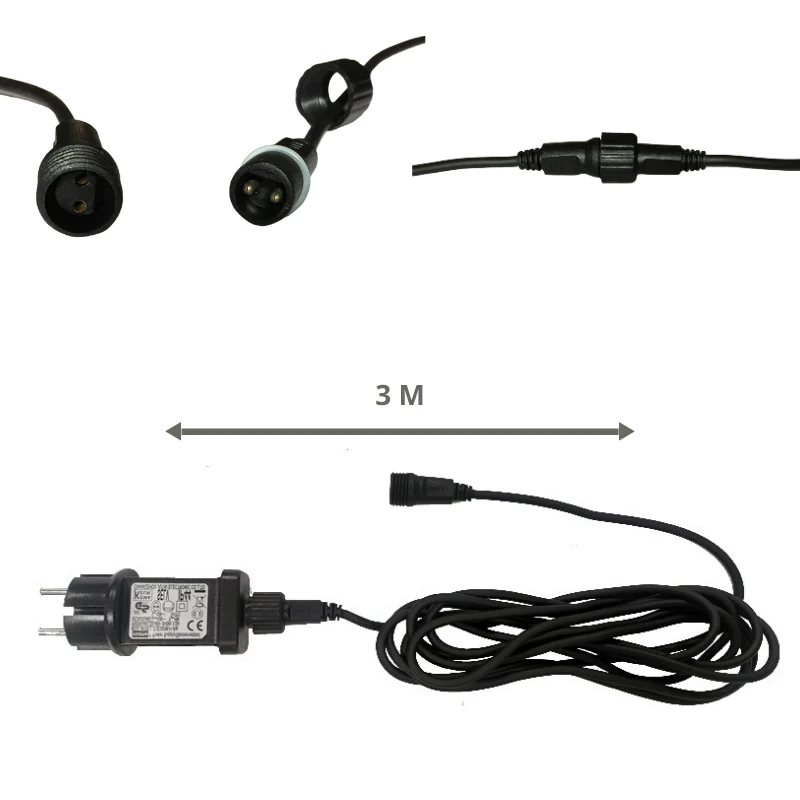 La Guirlande Guinguette LED Noire de 13m 20 ampoules LED est idéale pour une décoration en extérieur grâce à son indice de protection IP65. Décorez votre terrasse, jardin ou votre pergola efficacement avec cette Guirlande LED. Elle est aussi très utilisée pour des décorations d’intérieure pendant les fêtes de noël. Peu consommatrice d’énergie avec ses LED, elle permet d’instaurer une ambiance chaleureuse et relaxante. Cette guirlande guinguette est fournie avec un transformateur 220V 24V + prise murale pour un branchement direct à votre alimentation électrique classique. Ce modèle existe aussi avec différentes longueurs, nombre d’ampoules, couleur de câble ainsi que couleur d’ampoule. Découvrez l’ensemble de notre gamme sur la catégorie Guirlande Guinguette LED. ATTENTION: Les ampoules sont des LED intégrées, elles ne sont pas remplaçables. Il faut bien isoler la prise électrique: toute mauvaise manipulation ou utilisation ne sera pas prise en garantie.