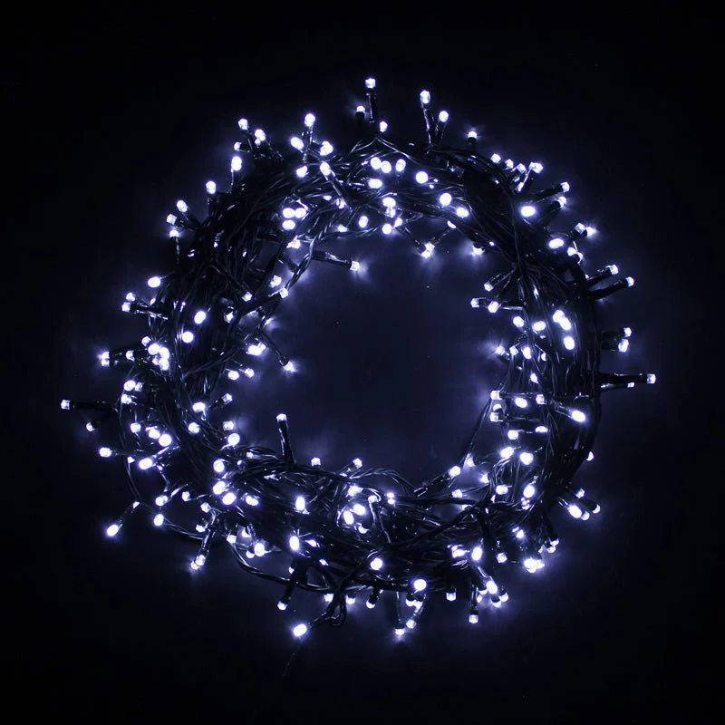 La guirlande LED 15m 300LED IP44 – câble vert, blanc froid est une déco radieuse et pratique.