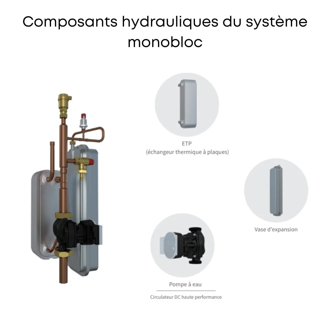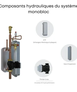 L’intégration d’un vase d’expansion directement dans la pompe à chaleur ajoute une dimension pratique. Avec une capacité de 8 litres, le système garantit une gestion efficace des variations de pression, optimisant ainsi la performance et la durabilité de votre installation.