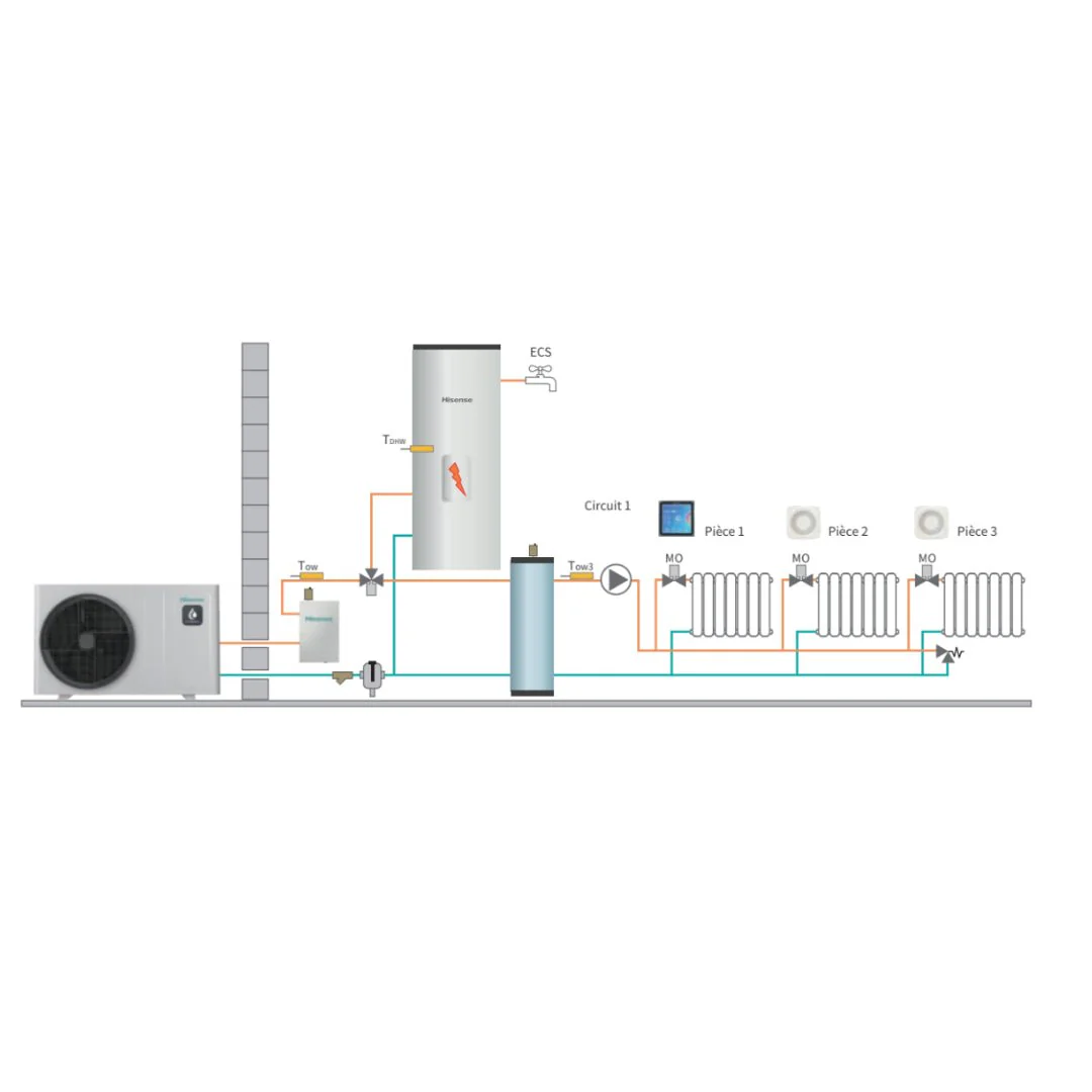 Les résistances d’appoint externes sont disponibles en option pour améliorer l’efficacité du système. Elles nécessitent une alimentation distincte et se connectent à la pompe à chaleur via un câble de commande à 5 fils. Le raccordement externe de la sonde Tow (référence : HTS-E1000A1) est également possible via un câble à 2 fils. Cette personnalisation vous permet d’adapter votre système à vos besoins spécifiques et aux variations climatiques.
