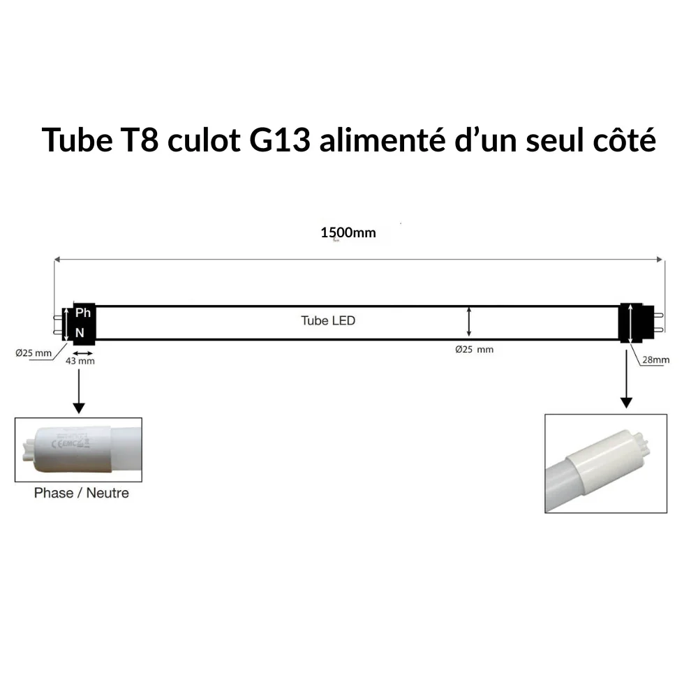 ATTENTION : Ces réglettes sont compatibles seulement avec les tubes alimentés d’un coté.