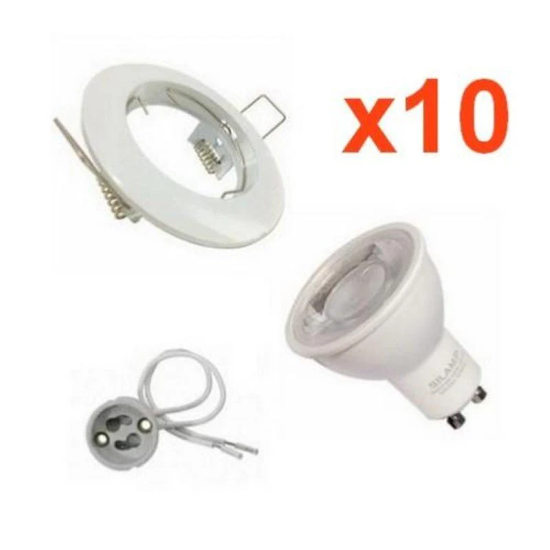 Kit Spot LED GU10 encastrable Rond Blanc avec une ampoule 8W (Pack de 10)