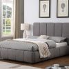 Structure en BOIS MASSIF et panneau de particules recouvert de tissus avec 2 tiroirs de rangement, coloris GRIS, vendu AVEC SOMMIER, SANS MATELAS.