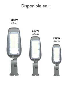 Fabriqué en aluminium moulé sous pression et couvert d’une peinture spéciale résistante à la corrosion et aux rayons UV, ce luminaire LED urbain de 200W se distingue par sa robustesse et sa durabilité. Il est également certifié IP65, ce qui lui permet d’être totalement protégé contre la poussière et les rigueurs du climat. Ainsi, sachant qu’il est protégé contre les intempéries et autres potentielles sources de dégradation, vous pourrez utiliser votre luminaire en toute quiétude.