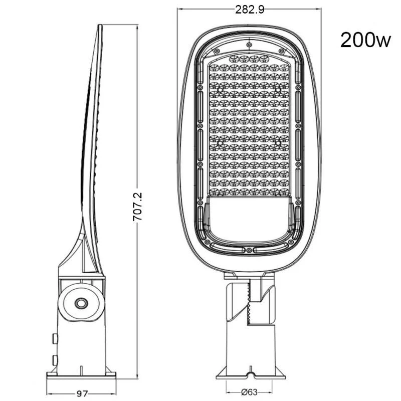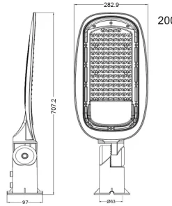 Caractéristiques du luminaire LED urbain 200W IP65 130°
