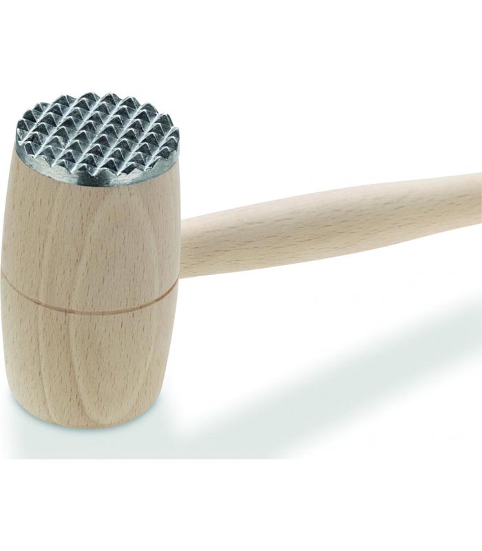 L’une des surfaces latérales est texturée pour une utilisation optimale sur une variété de viandes. Le côté opposé de l’attendrisseur de viande est lisse pour piler et aplatir pour les côtelettes. Cet attendrisseur de viande est fait de bois avec des têtes en aluminium pour la durabilité.