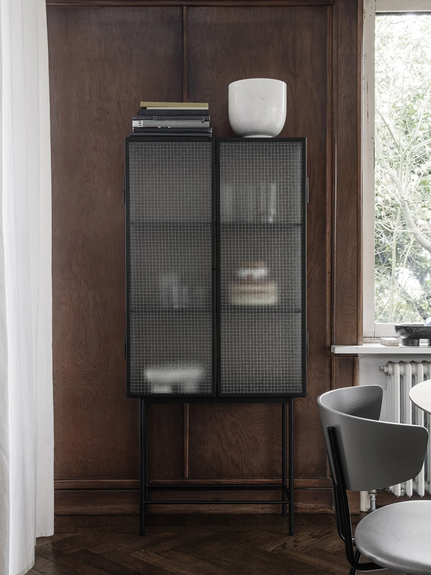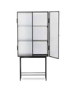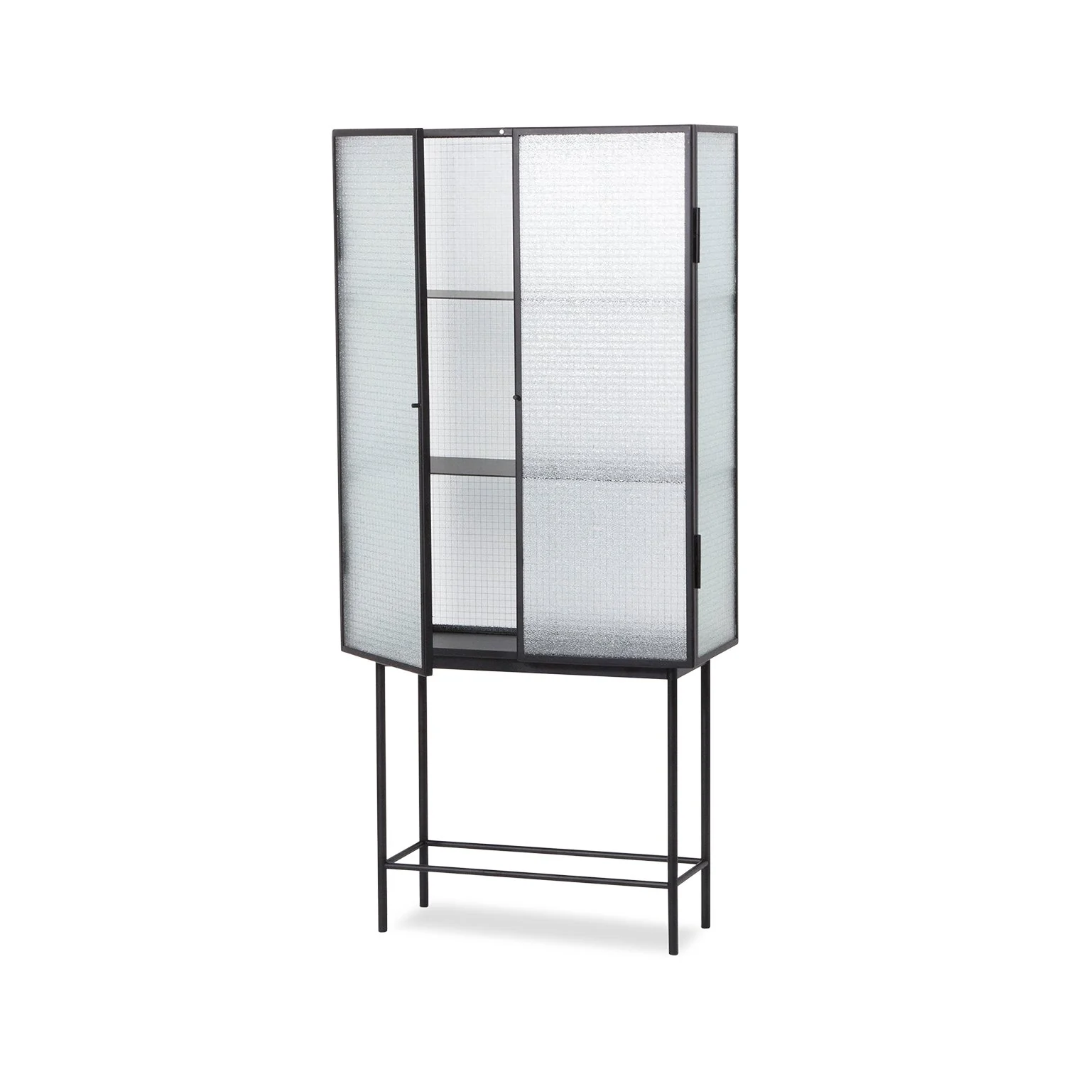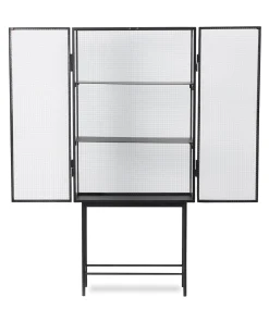 Les opposés s’attirent sur cette armoire, fabriquée à partir de métal élégant enduit de poudre et de verre armé. Les portes en verre se ferment de manière transparente et silencieuse grâce à des aimants, et s’ouvrent pour révéler deux étagères en métal enduites de poudre. Utilisez-le dans la salle de bain pour ranger avec style les essentiels de beauté ou comme point focal moderne dans votre salle à manger pour ranger la vaisselle et plus encore.