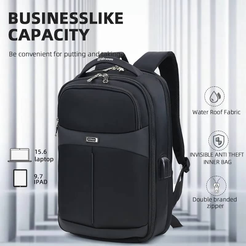Sac à dos WIERSOON étanche pour ordinateur portable, avec chargeur USB, pour homme, sacoche d’école à la mode, Anti-vol, pour ordinateur portable